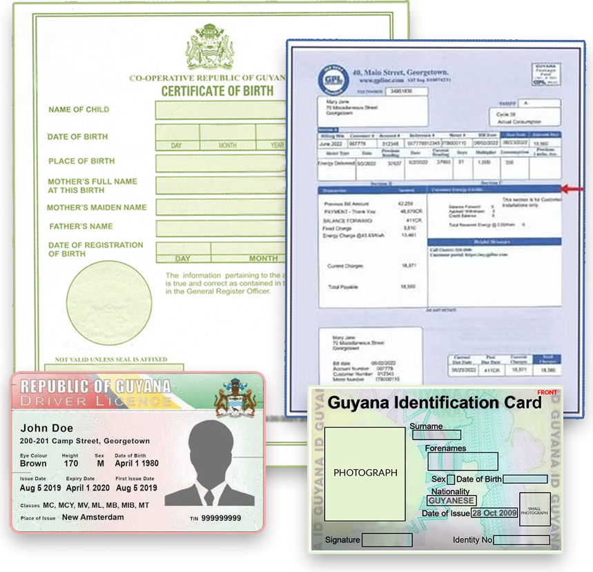 3. Any person who has become a citizen by virtue of any of the criteria set forth in the Laws of Guyana, must provide a valid proof of address. Acceptable documents include: